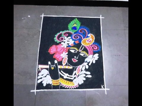 How To Make Krishna Beautiful Poster Rangoli Design Happy