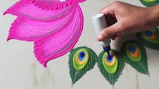Beautiful Peacock Color Rangoli With Lotus Easy Muggulu
